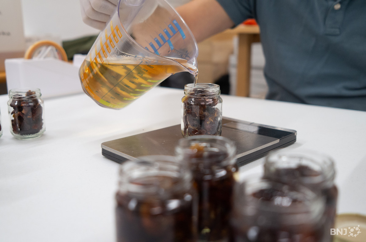 Ça se déguste avec bonheur en dessert ou avec un fromage, le mariage est même parfait avec des rosettes de Tête de Moine. Préparation en toute simplicité dans l’un des locaux de Ô Vergers d’Ajoie à Porrentruy.