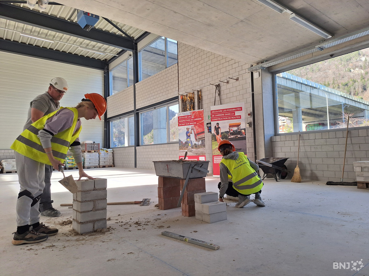 À la Halle des maçons, dans la cité prévôtoise, deux jeunes Tavannoises ont pu découvrir les métiers de maçonnerie et de construction de route. Après une présentation des locaux, place à la pratique : les filles ont posé des briques pour construire une tour la plus haute possible.