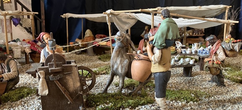 La nativité va se voir, se toucher, se sentir, s’entendre et se goûter à Porrentruy. La Crèche aux cinq sens va s’installer dans l’église St-Pierre cette année, sur près de 150 m2. Plus de 1'500 personnages seront présentés au travers de 80 scènes de vie du 30 novembre au 18 janvier. Les deux concepteurs de cette exposition s’affairent depuis deux mois pour donner naissance à leur bébé. Créa Calame et Maurice Bianchi ont répondu favorablement à l’appel de l’Espace pastoral Ajoie – Clos au Doubs. Les deux anciens camarades d’école primaire jouent véritablement avec les cinq sens des visiteurs. Le public pourra voir – bien sûr – mais aussi toucher les personnages en terre cuite et les animaux. « J’aime bien dire aux enfants d’aller caresser les fesses et les oreilles des ânes, c’est tout doux », sourit Créa Calame. Un petit orchestre philarmonique en verre de Murano prend place dans cette crèche. L’ouïe est aussi mise à contribution par le bruit de l’eau des fontaines ou du tour des potiers. Des effluves d’huiles essentielles accompagnent la visite. Quant au goût, il n’est pas oublié. La place du marché fait émerger un étal avec des mini pizzas et apéros. « Noël se goûte et c’est aussi la fête du partage. On prend un ou deux petits apéros et on laisse le reste pour les suivants », s’amuse la maman de la Crèche aux cinq sens.
