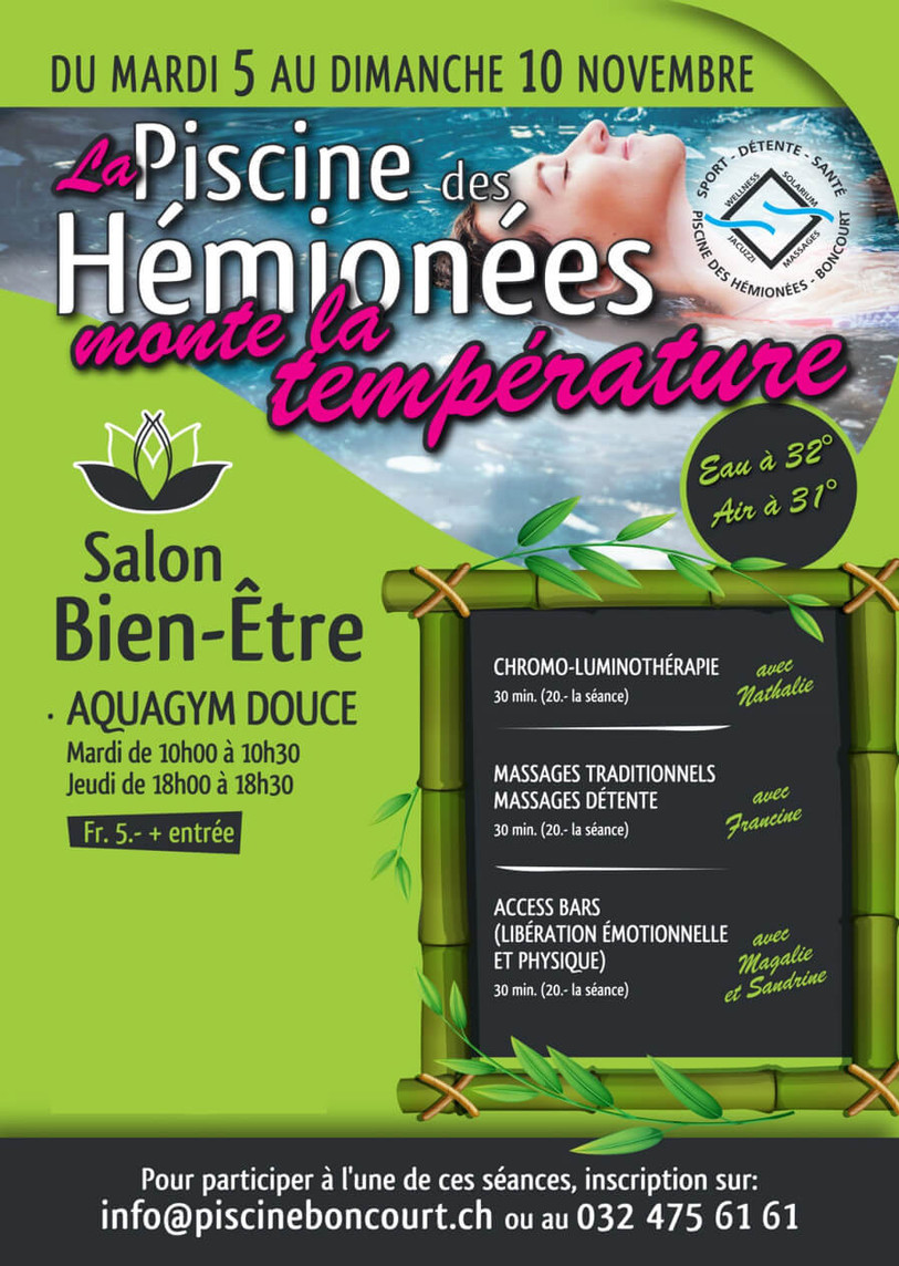 Du 5 au 11 novembre 2019 – Piscine & Wellness les Hémionées de Boncourt